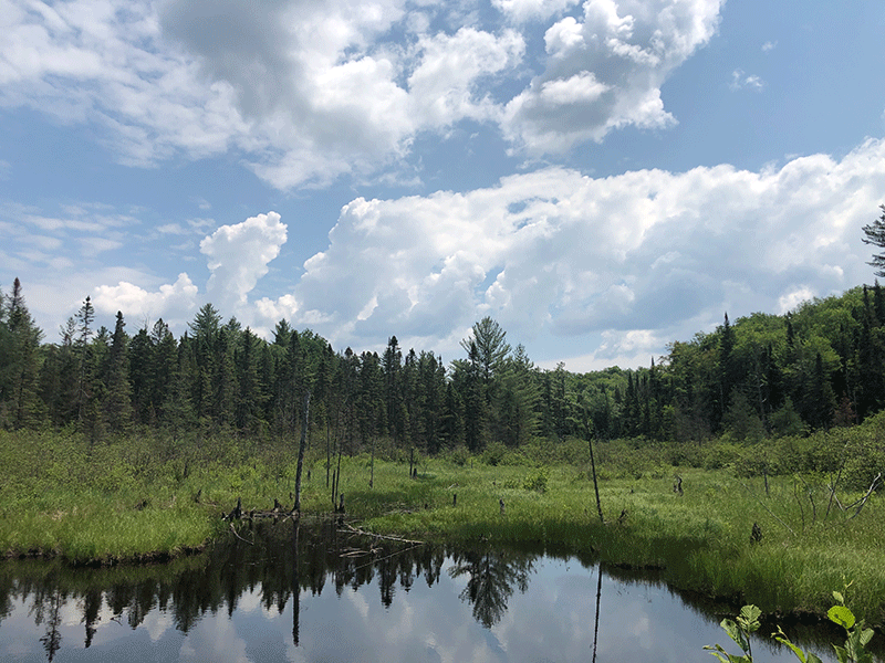 Floodwood Mountain is a 1.5-mile hike to the summit of a small mountain that provides views of Wolf Pond and conservation easement forest lands north of Tupper Lake. The trail is on public Forest Preserve in the Saranac Lake Wild Forest Area. The Floodwood Mountain is off the Floodwood Road, which is on the north side of Route 30 in Saranac Inn, between Wawbeek and Lake Clear. Though this is a long drive on a dirt road, the trail is accessible for people of differing abilities and ages.