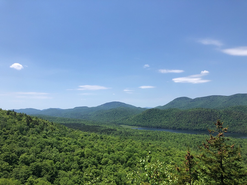The Balm of Gilead Mountain Trail is a 3-mile hike (round trip) through the Forest Preserve in the Siamese Ponds Wilderness. The hike is predominantly flat through a stretch of beautiful hardwood forest, before ascending just over 400 feet to a rocky summit with an excellent view of nearby Thirteenth Lake and the surrounding mountains and ridges. Click here to read our online hiking guide for more information on the hike.